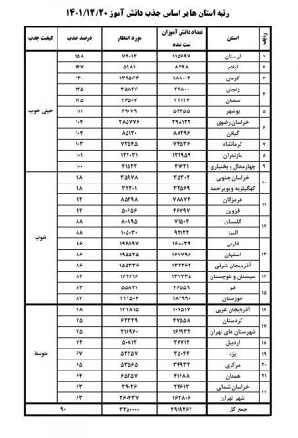 سهمیه هر استان براساس جمعیت دانش آموزان آن استان تعیین می شود و این سهمیه برای استان لرستان ۷۳۰۱۲ نفر بود که معادل ۲۵ درصد دانش آموزان استان بود اما کارشناسان ، مربیان و دانش آموزان استان لرستان با ثبت بیش از ۱۱۵ هزار نفر عملکرد درخشانی در بین استان های کشور از خود نشان دادند.